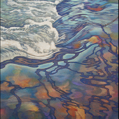 For the past several years I’ve been interested in water imagery. I enjoy the subject in its own right, but I also like it as a vehicle for exploring technique and process. Pattern in water, as well as the color variations of reflected light, are limitless sources for using color, line, and the calligraphy of drawing.