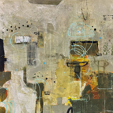 My paintings are oil and acrylic on canvas or panel. I use “gestures” of oil stick and graphite for my specific mark-making.