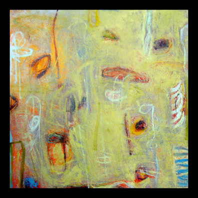 Non-representational oil paintings on gessoed panel/paper w/gestures of oil stick & graphite. I build up my information layer upon layer to create texture. I am exploring line, composition and color.