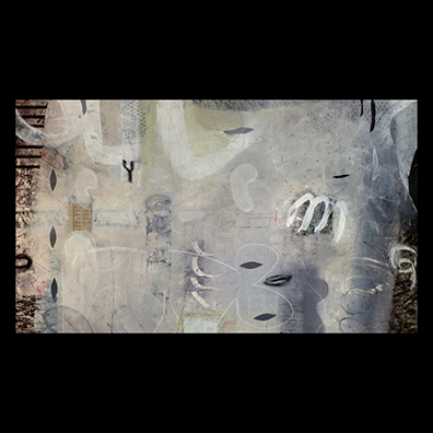 “Midcentury Modern” Monoprint in oil, with collage incorporated into the original print.