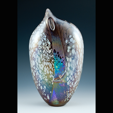 My hand blown glass is made using traditional techniques, focusing on extensive color, casing, iridescence, patinas, and shape abstraction, and is made primarily from recycled materials.